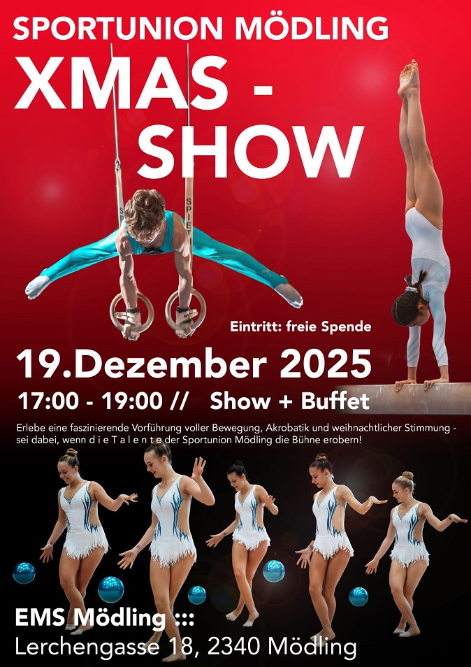 Die Sportunion Mödling – Rhythmische Gymnastik–Kunstturnen weiblich–Kunstturnen männlich – laden herzlichst zu ihrer Leistungsshow!